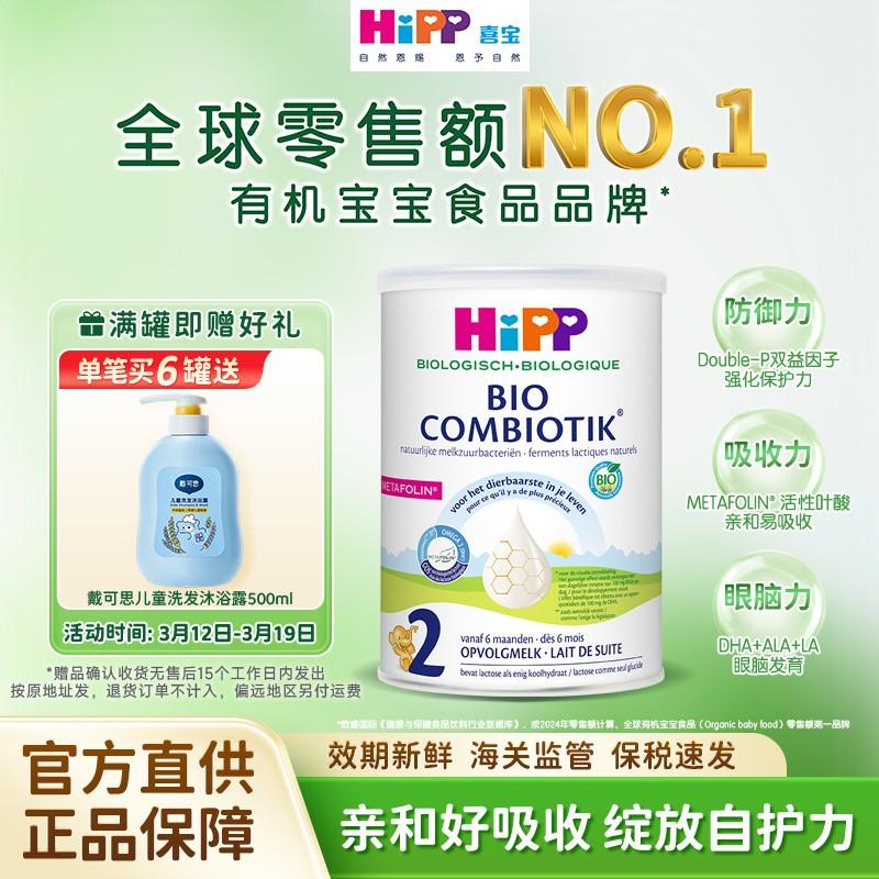 【6罐满赠】【品牌直供】荷兰喜宝有机益生菌奶粉2段800g(新包装)